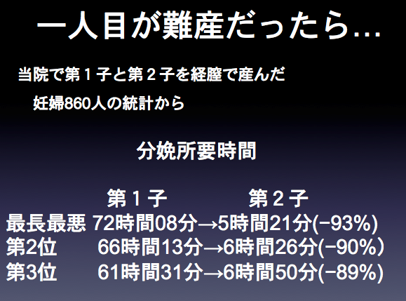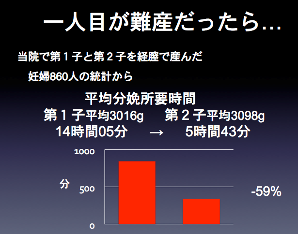 図3の如く、第1子分娩が長引いた難産であっても、次回は大丈夫と言えるでしょう。